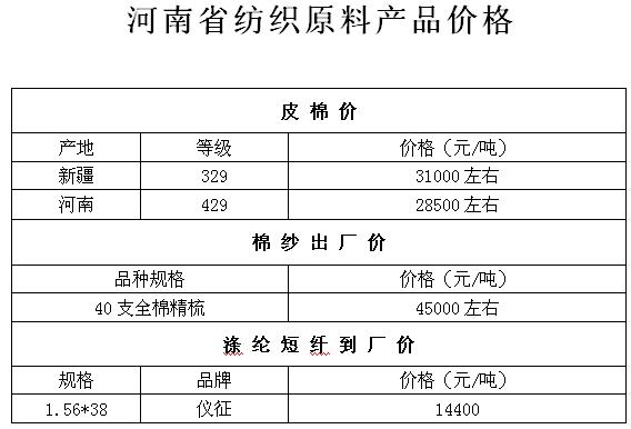 河南省棉紗庫存繼續(xù)增加