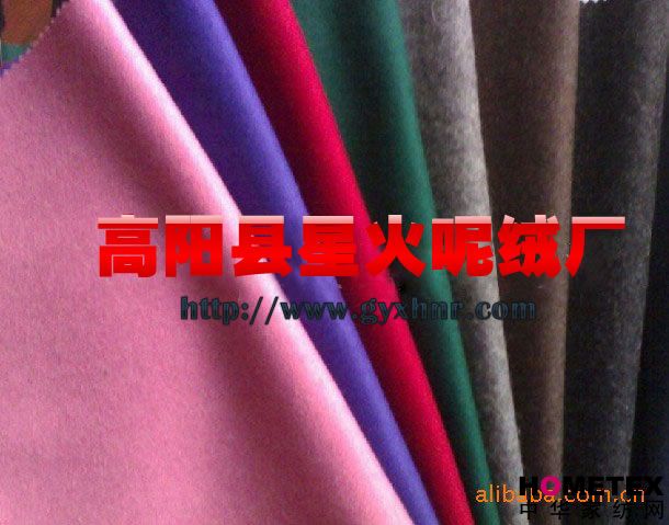 【克 重】340-370g根據(jù)客人不同用途,選擇克重。 【顏 色】根據(jù)客人要求,各種顏色均可,可以訂織訂染 【成 份】毛粘混紡,毛/化纖混紡,毛/滌混紡的面料 【幅 寬】150cm-195cm 【手 感】柔滑、輕柔、舒適,手感細(xì)膩 【用 途】各類服裝|服飾|成衣|裝飾品|鞋帽|女裝|男裝|男式西裝|童裝|時(shí)尚大衣|褲子|外套|制服等 【包裝說明】?jī)?nèi)層塑料袋/外層塑料編織袋|紙箱 【網(wǎng) 址】WWW.gyxhnr.COM 高陽(yáng)縣星火呢絨廠主要專業(yè)生產(chǎn)粗紡呢絨、法蘭絨、人字呢、格子呢、麥爾登、順毛呢、港花呢、立絨、羊絨呢、圈圈呢等各種流行時(shí)尚面料,能夠針對(duì)不同的客戶、不同的來樣規(guī)格、不同的質(zhì)量要求,及時(shí)地開發(fā)出相應(yīng)產(chǎn)品,滿足客戶個(gè)性化的需求,生產(chǎn)工藝先進(jìn),原料講究、生產(chǎn)管理嚴(yán)格.我廠產(chǎn)品質(zhì)量可靠,定單交期及時(shí),獲得外貿(mào)公司的普遍認(rèn)可。