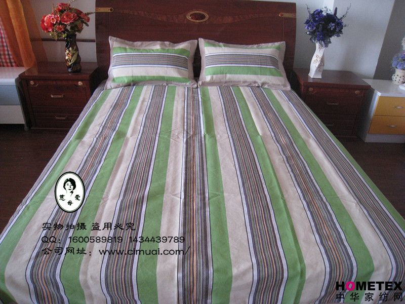 慈母愛涼席綠色天然、環(huán)保健康、主要原料是100%純棉線制成;不褪色、不易搓起、不起球、不卷邊;柔軟舒適,透氣吸汗,適用于貼身使用;吸附人體皮膚上的汗水和微汗,使體溫迅速恢復(fù)正常;鋪在床上高雅大方,現(xiàn)代時尚。