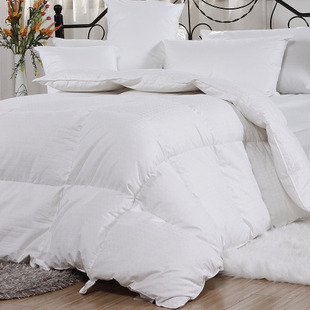 面料采用100%純棉高支高密府綢,手感柔軟,舒適。填充物為經(jīng)過高溫高壓殺菌處理的白鴨絨,含絨量為70%,充填量1500克白鴨絨,鴨絨被輕柔,透氣性好,保暖性佳,有一定的保健作用,是被子中的皇冠。