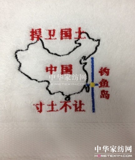 2012-9-20近期以來,日本政府不顧中國政府和人民的強(qiáng)烈反對,對我國固有領(lǐng)土釣魚島及其部分附屬島嶼悍然實(shí)施所謂“購買”行為,對我國主權(quán)和領(lǐng)土完整的公然侵犯對國際法理的嚴(yán)重踐踏,激起了中國人民的強(qiáng)烈憤慨。近日,網(wǎng)友“麥咭麥咭吽”的微博上,貼出夢潔家紡四萬條特制愛國毛巾的圖片。白色毛巾底紋里印上了中國疆域的輪廓,彰顯...[繼續(xù)閱讀] -