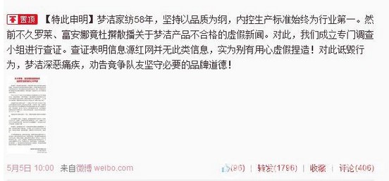 富安娜官方就夢潔"假新聞"事件發(fā)嚴(yán)正聲明